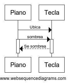 Para este diagrama se muestra como la tecla se va a sombrear de un color al momento de estar presionada. Primeramente el piano debe ubicar cual es la tecla que esta presionada y pedirle que se sombree. Al momento de recibir la orden de sombrearse la tecla se sombreara en el piano.